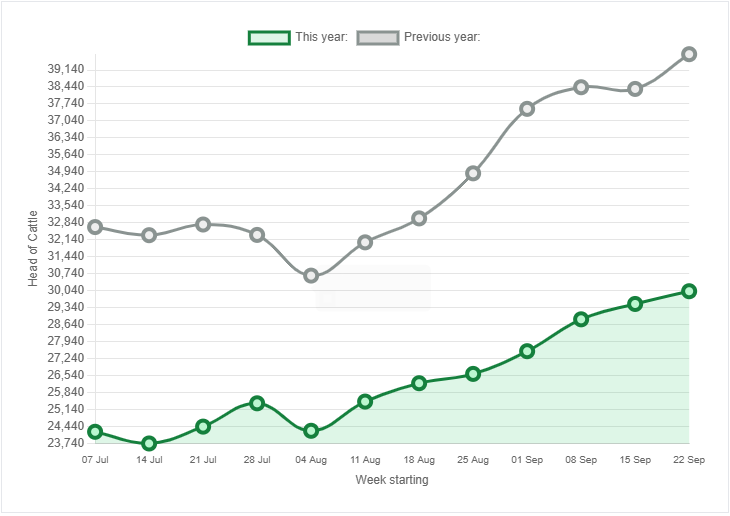 Animal Type | Week Starting 2025-09-22 | Equivalent Last Year | Cumulative 2025 | Cumulative 2024 |