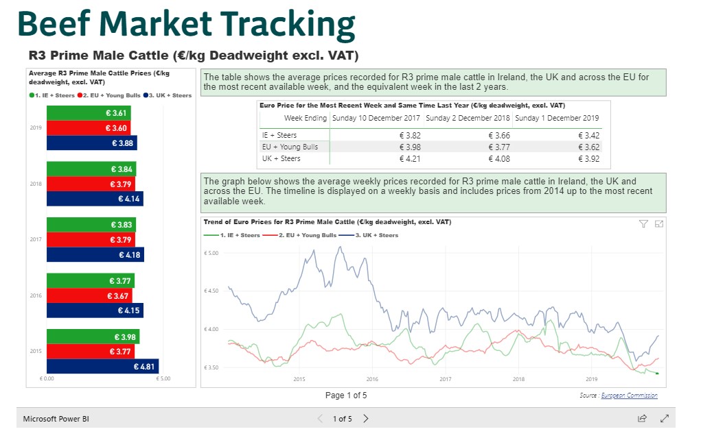 The tracker, which monitors the average prices recorded for R3 prime male cattle in Ireland, the UK and across the EU for the most recent available week, showed prices for Sunday, December 1, 2019.