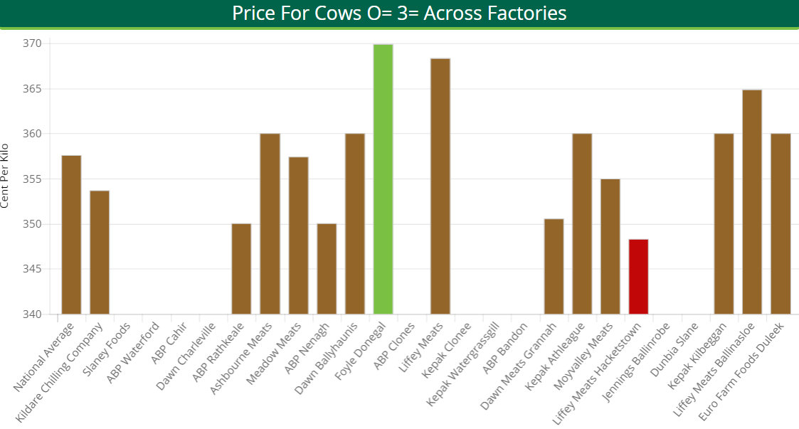 During the week ending April 29, O=3= cows made a top price of 369.95c/kg, while the average price paid stood at 357.62c/kg.