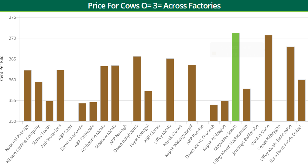 During the week ending May 13, O=3= cows made a top price of 371.32c/kg, while the average price paid stood at 362.26c/kg.