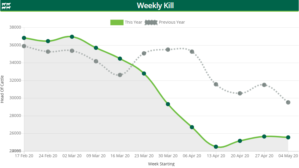 The total number of cattle slaughtered in Ireland fell to 25,534 head – down from 29,505 head.