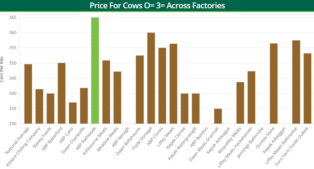 During the week ending July 1, O=3= cows made a top price of 365.00c/kg, while the average price paid stood at 349.61c/kg.