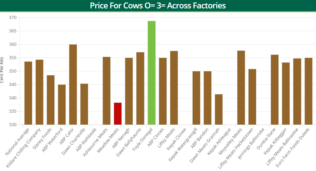 Factory buyers are starting negotiations at 310c/kg for P-grade animals. Quotes for O-grade cows begin at 320c/kg and beef plants are offering from 340c/kg upwards for R-grade cows.