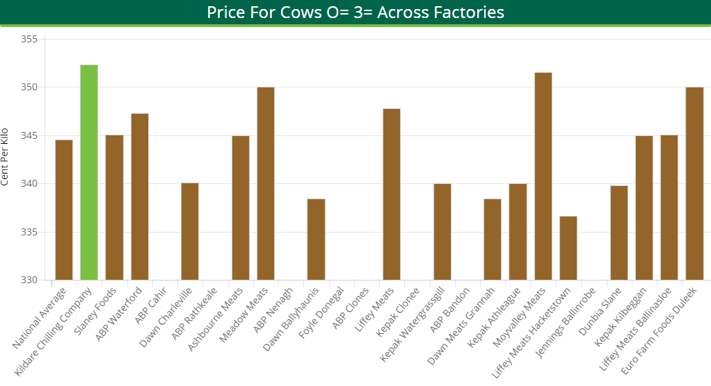 During the week ending January 14, O=3= cows made a top price of 352.35c/kg, while the average price paid stood at 344.55c/kg.