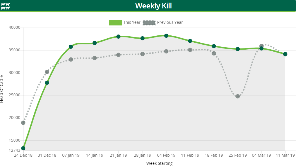 Some 35,788 head of cattle were slaughtered in Department of Agriculture approved beef exporting plants during the week ending March 17.