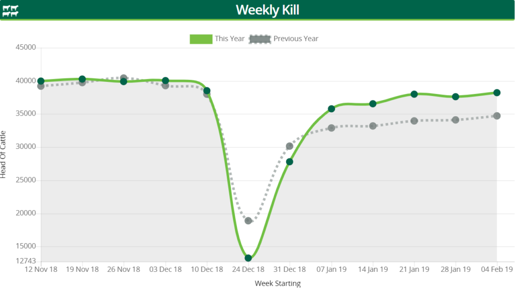 Looking at the yearly kill, just over 214,600 head of cattle have been slaughtered in Ireland so far this year. This is running just shy of 15,000 head when compared to the same period in 2018.