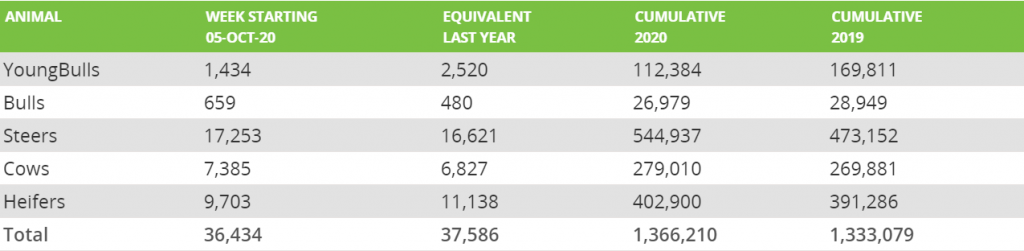Last week saw an increase of 898 head in the total number of cattle slaughtered in Irish meat processing plants, in comparison to the previous week. The total number of cattle slaughtered amounted to 36,434 head.