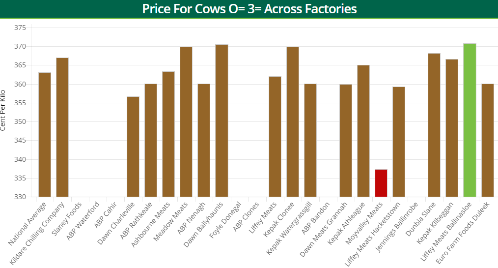 There is quite a variation in the prices being quoted to farmers for cows and this depends on the quality and grades being presented. The location and demand of individual processing plants also has to be factored into the equation.
