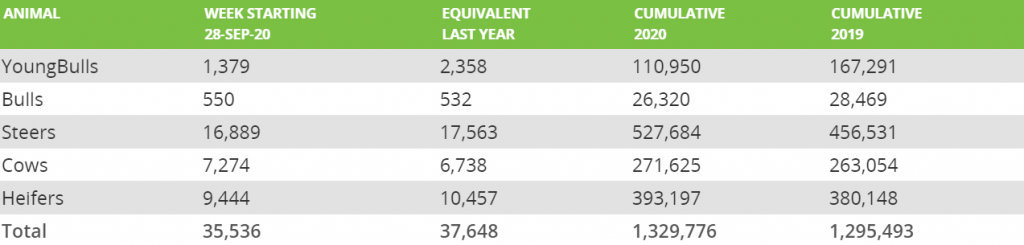Some 1,329,776 cattle have been slaughtered in Ireland this year – an increase of 34,283 head when compared to the corresponding period in 2019.