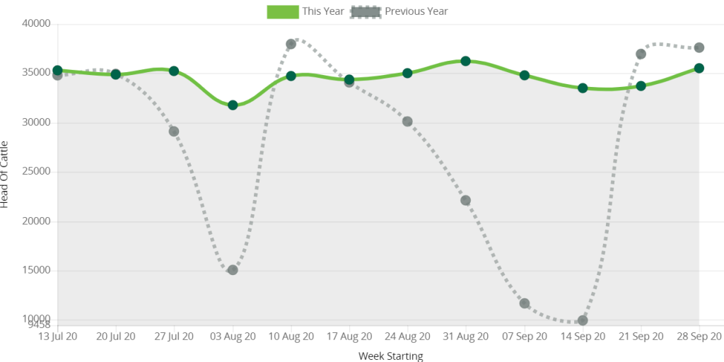 There remains a strong appetite for cows, as can be seen by last week’s kill where 915 more cows were processed in comparison to the previous week.