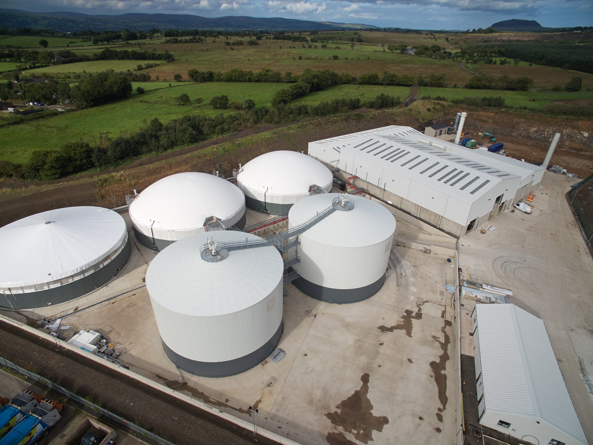 The biogas produced by the plant is fed into two 1.5MW gas engines that generate electricity on site which is then sold to the National Grid.