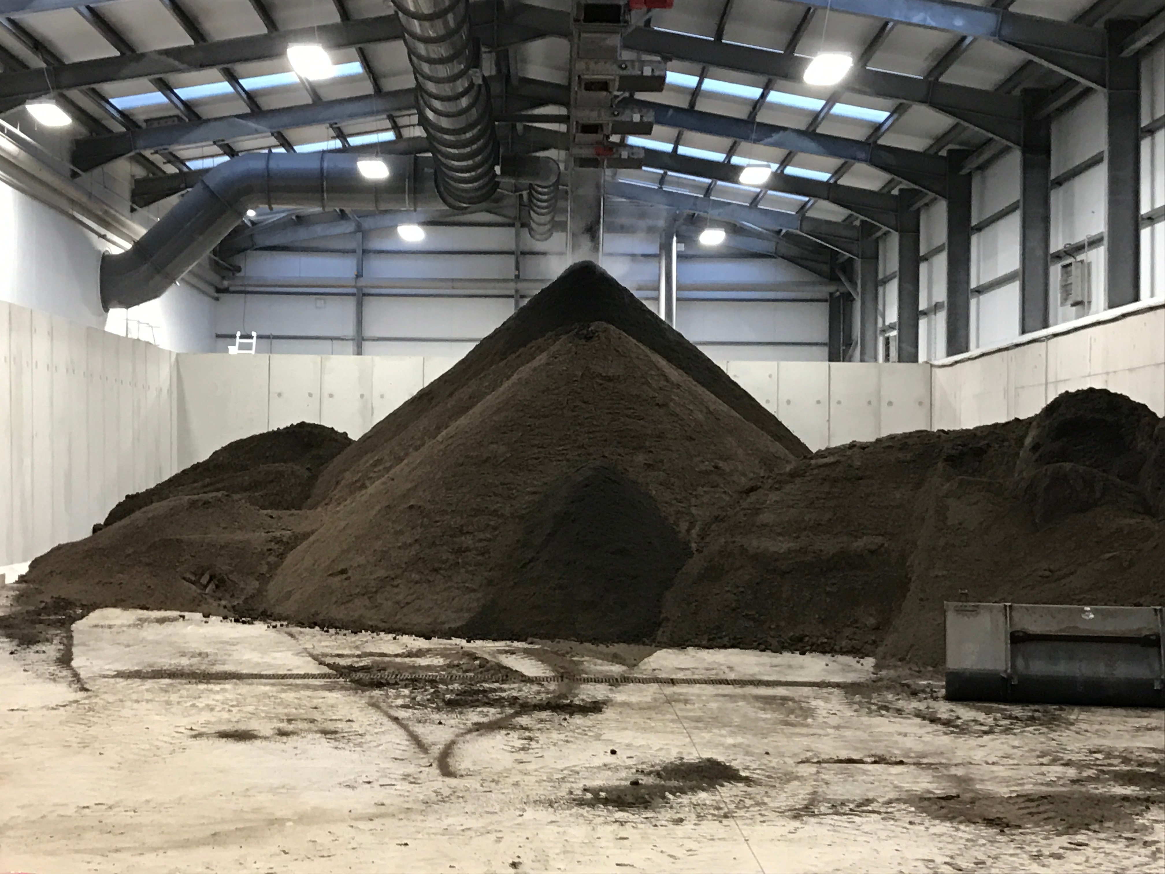 Once it arrives on site, the litter is fed into two industrial-sized hoppers which break up the material and control the feeding into the digesters. The digestion process takes around 45 days.