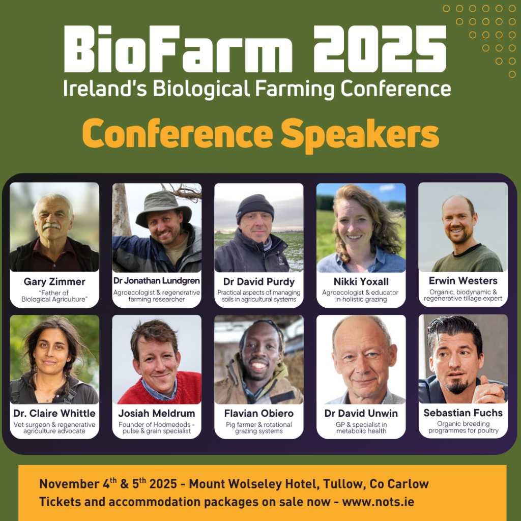 Organised by NOTS (National Organic Training Skillnet), BioFarm 2025 promises two full days of expert talks, lively panel discussions, and hands-on learning opportunities - all aimed at accelerating the transition toward more resilient, climate-smart and economically viable farming systems across Ireland and beyond.