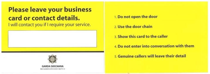 Bogus caller cards are available and Garda Scanlon said to get a bogus caller to write their name and number on the card and to tell them that if you need them you will call them.