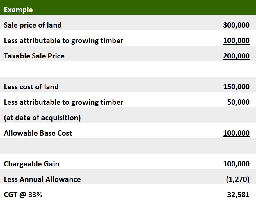 The sale of the underlying lands continues to be liable to CGT. The base, if any, attributable to growing timber, must be excluded from the base cost.