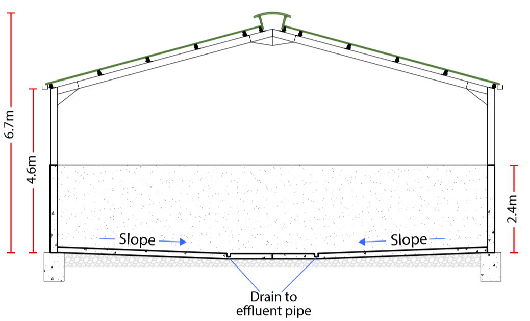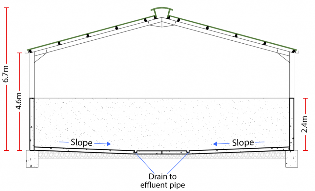 The four-bay shed has vent sheeting over the 2.4m concrete walls. In relation to ventilation, he added: I suppose it will all depend on the weather. On a very windy day, we will close the doors.