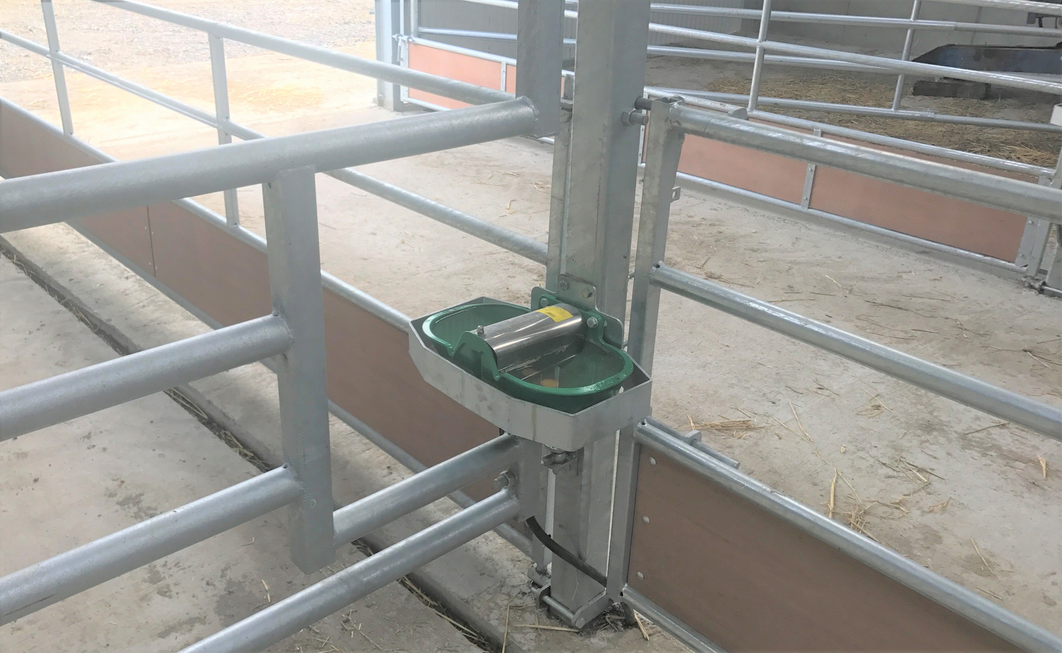 Drinking water is piped in underground. The simple design water troughs have a bung underneath to facilitate a quick and easy clean out. The gates are designed so the animals can drink from both pens.