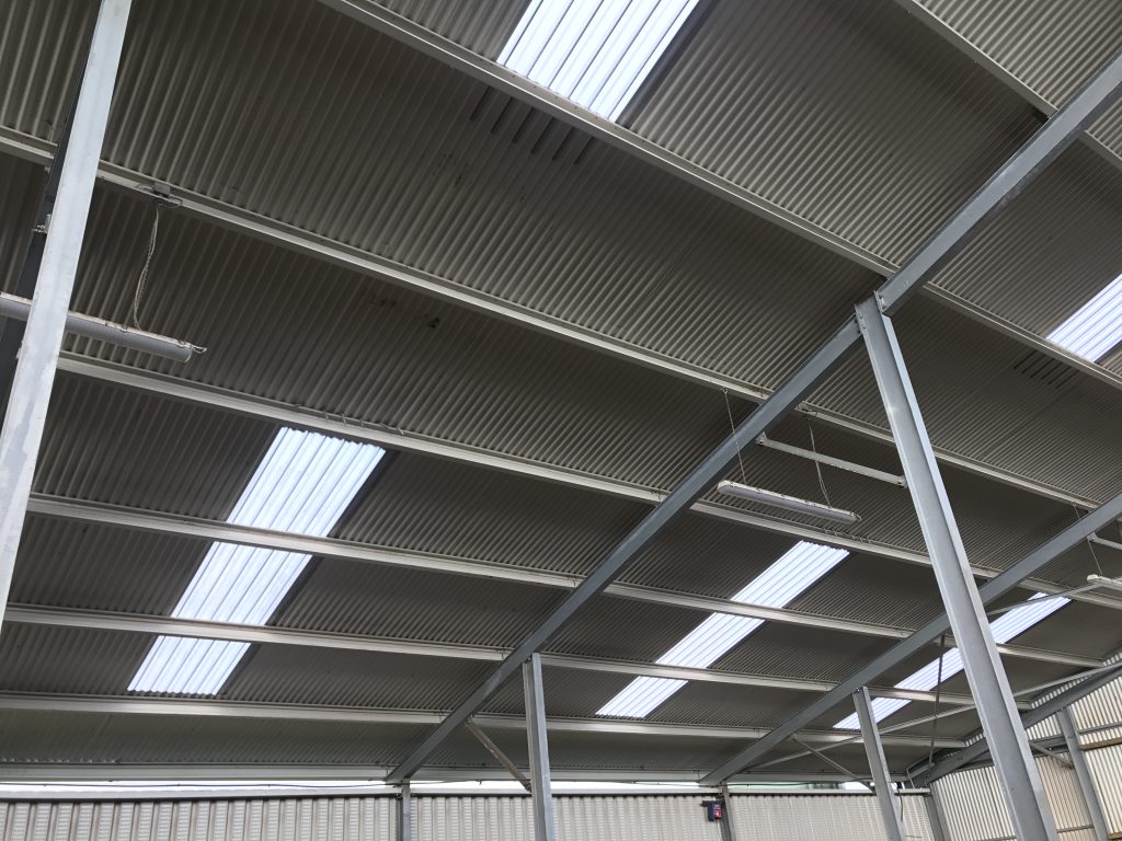 The six bays in the new unit are 5m long but vary in width. The reason being that it had to match with the bays in the other half of the shed in the existing unit.