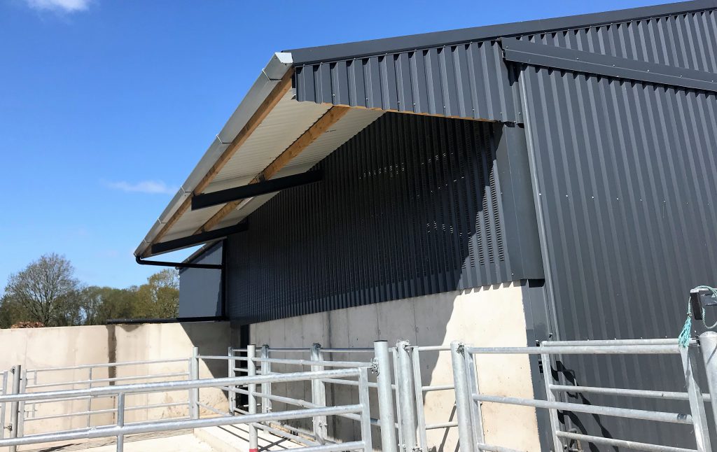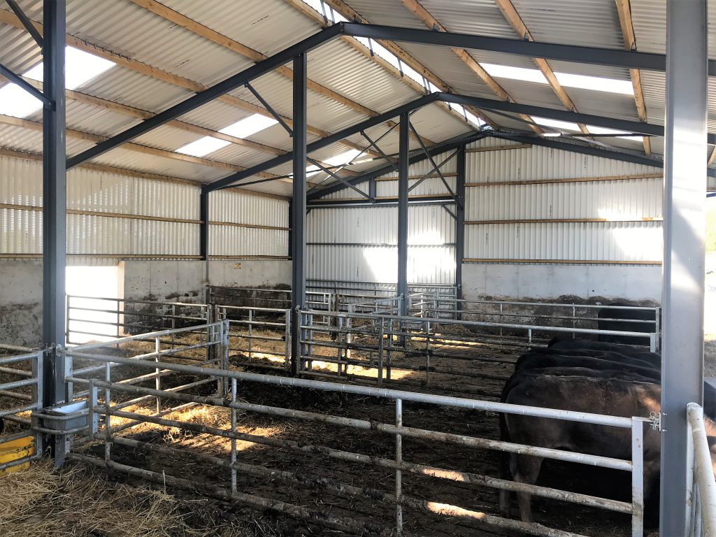 Vent sheeting was installed as per grant regulations; bung water troughs – which the gates open around – are also installed throughout the shed.