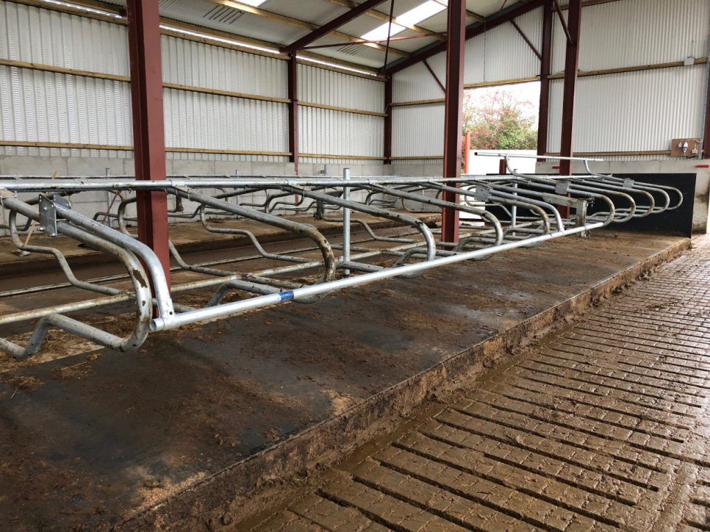 Moreover, 60 cubicles were installed, with cow mats placed in each stall to aid with cow comfort. Along the entire length of the cubicles is a fold-over bar that allows Edward to stop the cattle walking or lying on the cubicles when he doesn’t want them to.