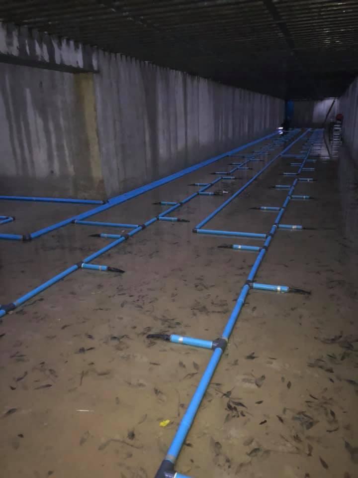“There are pipes lined the whole way around the tank. The aeration system emits bubbles that rise up the tank and effectively help mix the slurry. This, in turn, helps to prevent the build-up of any harmful gases.