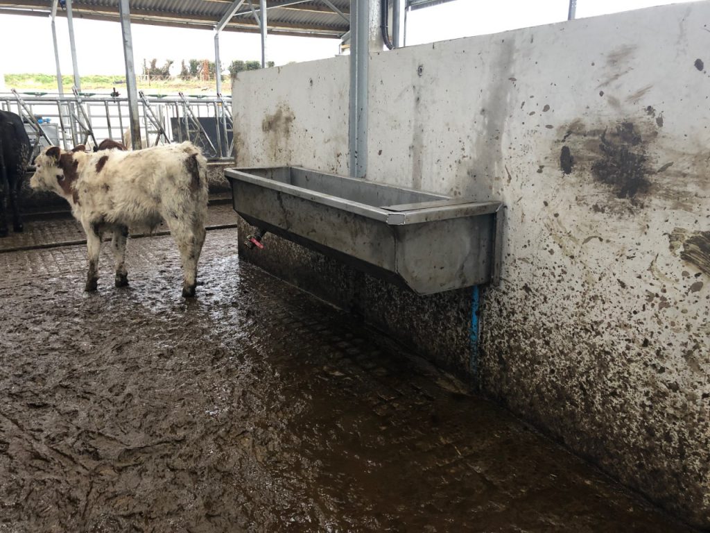 There are four wall-mounted drinkers that have a quick-release valve which allows PJ to clean and empty the troughs quickly. There are also two heavy-duty small drinkers installed in the calving shed. However, this part of the shed is incomplete.