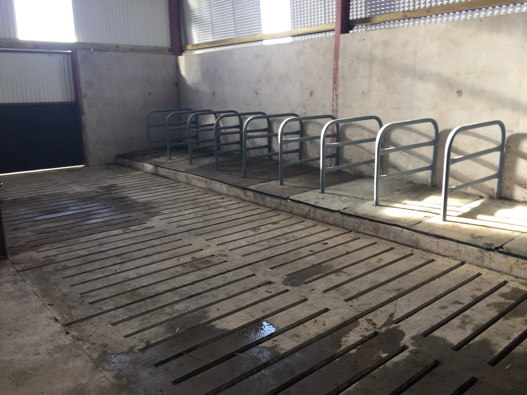 The slatted area encompasses three bays of the shed. There are 18 cubicles located to the back of the slats. These are lined with rubber mats. Dermot will house calves here once they are weaned.