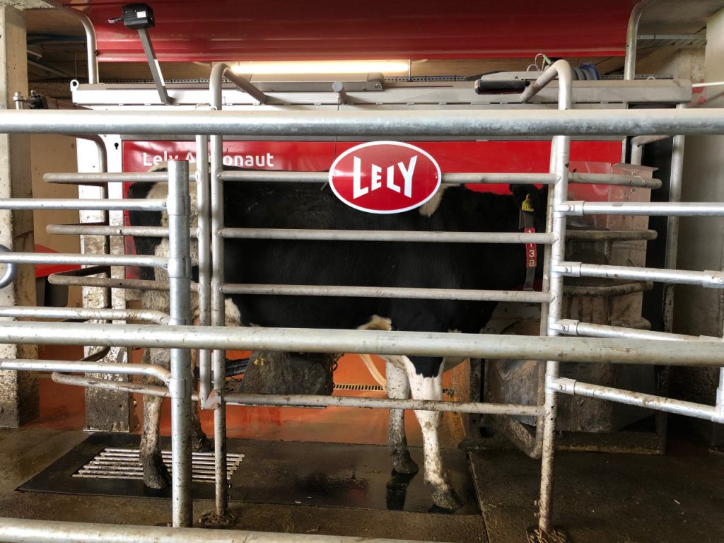 “In there, she can be treated and the machine will divert her milk away from the bulk tank. Moreover, when the cows are calving, the machine dispenses the milk into buckets just beside the robot and this milk can be used to feed the calves.
