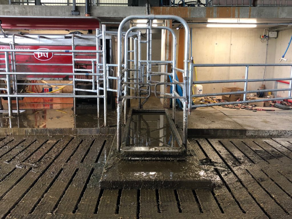 When cows exit the robot, they walk through a footbath which helps to avoid lameness.