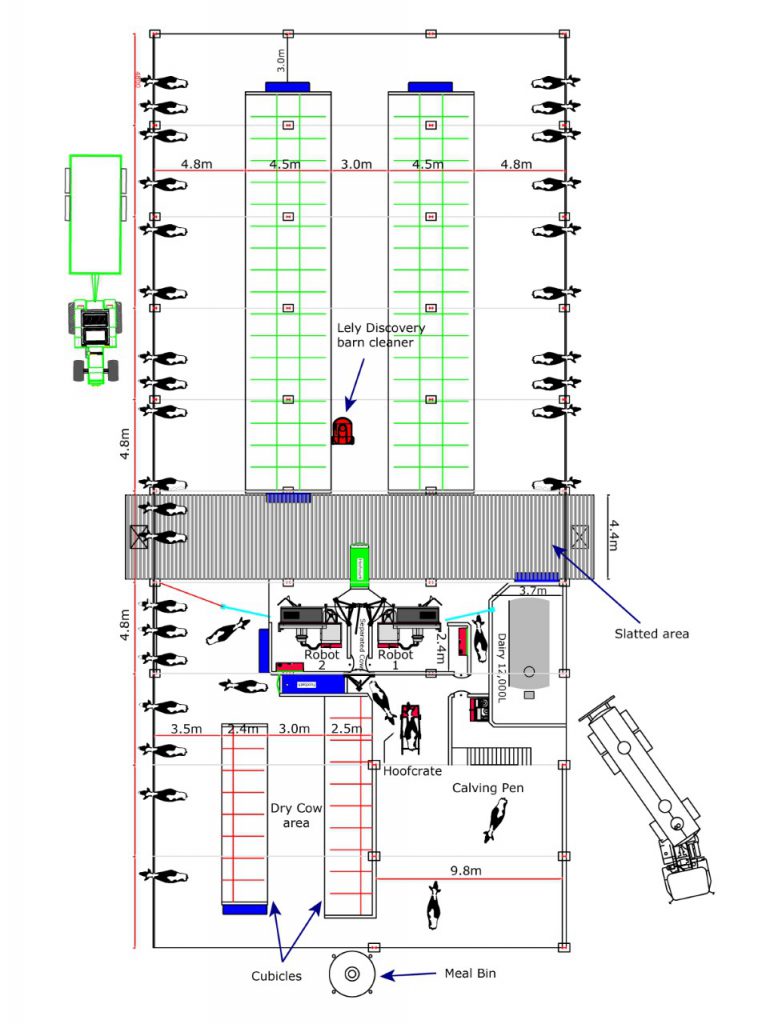 A Lely drafting system is also incorporated into the build. The robot and drafting system work together to ensure any cows that have any health issues are separated from the rest of the milking herd and are diverted into the dry cow area.