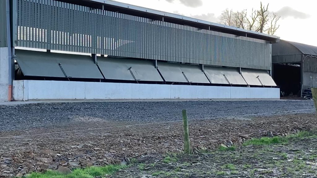 The roof overhang over the feed face helps to prevent rain from getting in the shed and helps to keep the silage dry. The roof overhang is fitted slightly below the apex of the roof in order to meet the grant specification but it also offers another space for air to enter and leave the unit.