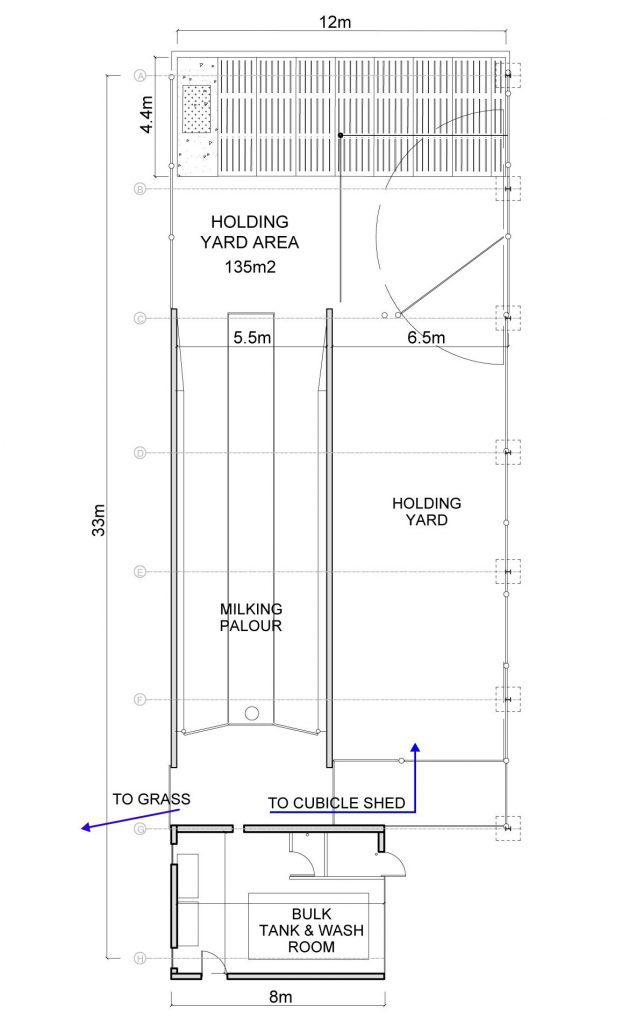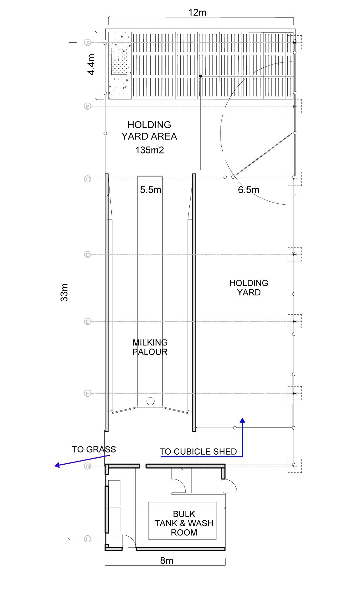 The overall length of the parlour stands at 33m; this includes the plant room and the holding yard.