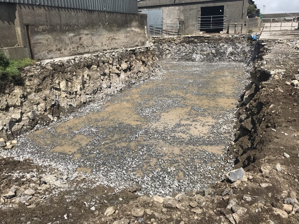 So in order to fit in the L-shaped tank, the shed and concrete had to be knocked and dug out – which Bernard, Noah and a friend of the family, Cathal Nestor completed, by hiring out machinery – from Pat Murphy – to break the rock for the tank.