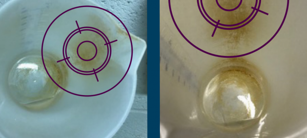 A biofilm is usually undetectable to the eye; however, an extreme build up can cause a yellow or white scum (see above) to appear and the surface may feel rough or slimy.