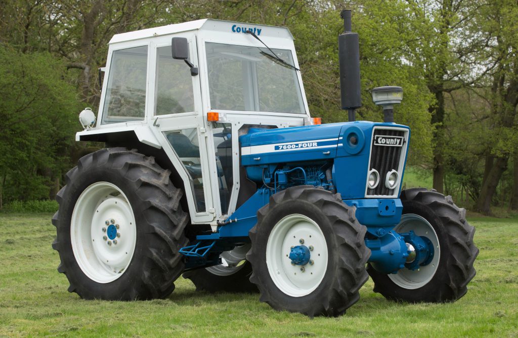 This 1977 (four-cylinder) County 7600-Four (above) comes with a rear linkage, pick-up hitch, County front axle and a Lambourn cab. It’s shod on 16.9 R34 rear and Goodyear 12.4 R24 front wheels and tyres. 6,087 hours are showing on the clock. Its serial number is 35748.