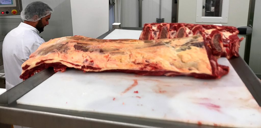 Post slaughter, all carcasses were weighed and graded for conformation and fat score. After a period of 48 hours, striploin cuts were measured for ultimate pH and colour. After being aged for 14 days, these striploin steaks were then inspected by trained assessors.