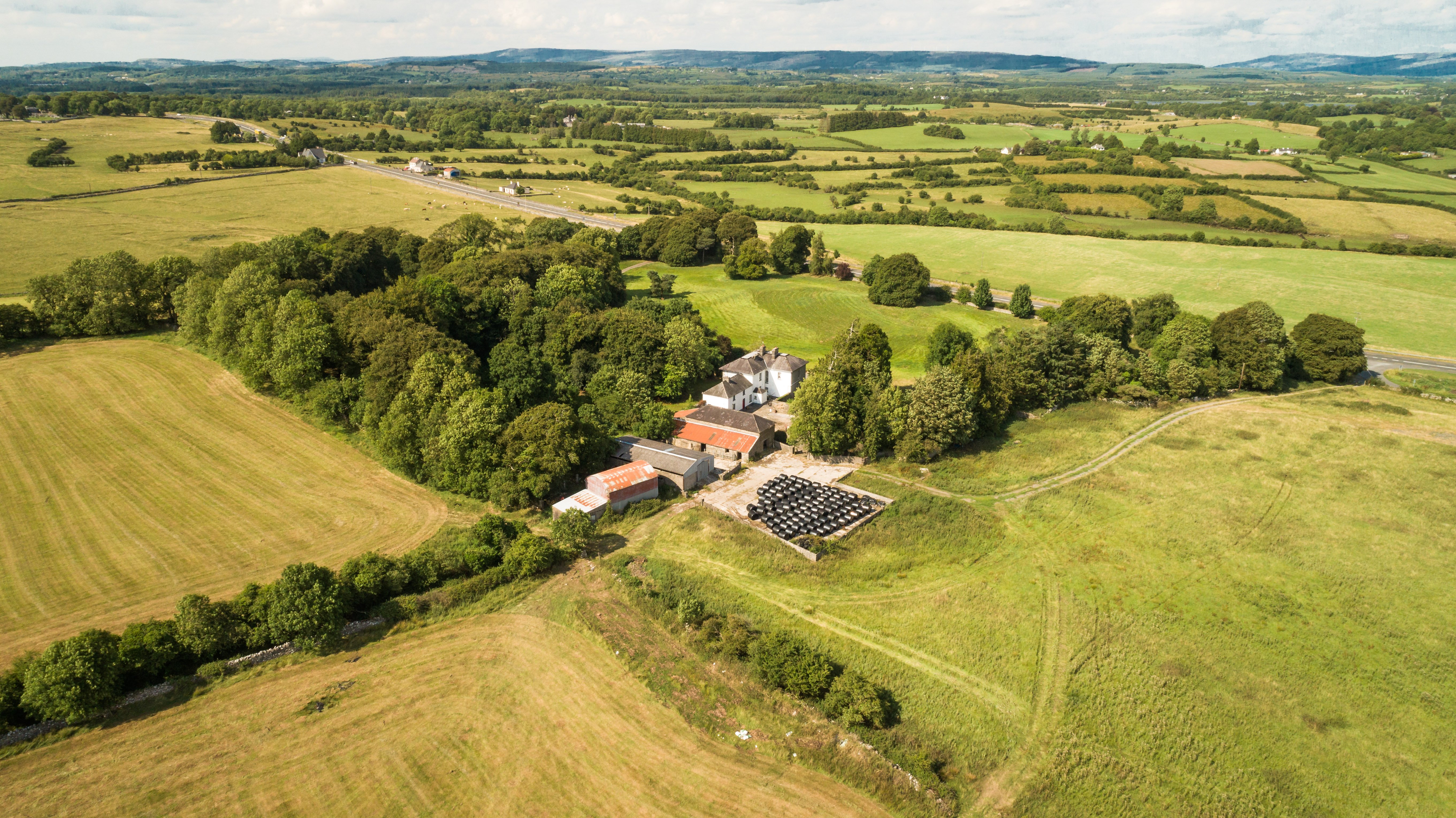 Located 8km from both Boyle and Carrick-on-Shannon, the property consists of the residence with three reception rooms and seven bedrooms; a garden; a traditional outbuilding; farm buildings; a potential site, subject to planning permission; and silage and grazing land.