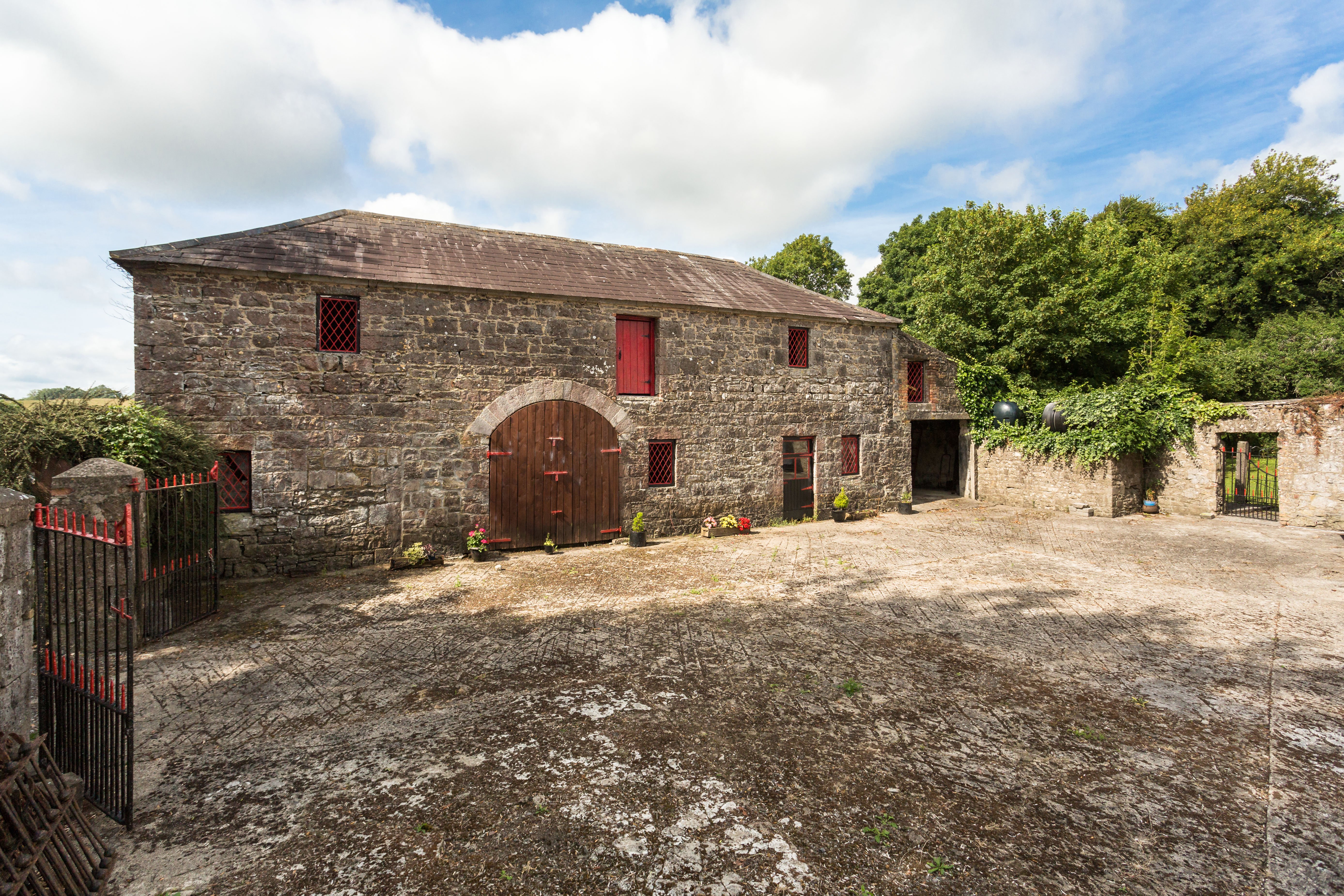 Situated immediately to the rear of the house is a courtyard and an outbuilding of stone construction beneath a pitched slate roof. It is accessed from the main driveway through cast iron gates.