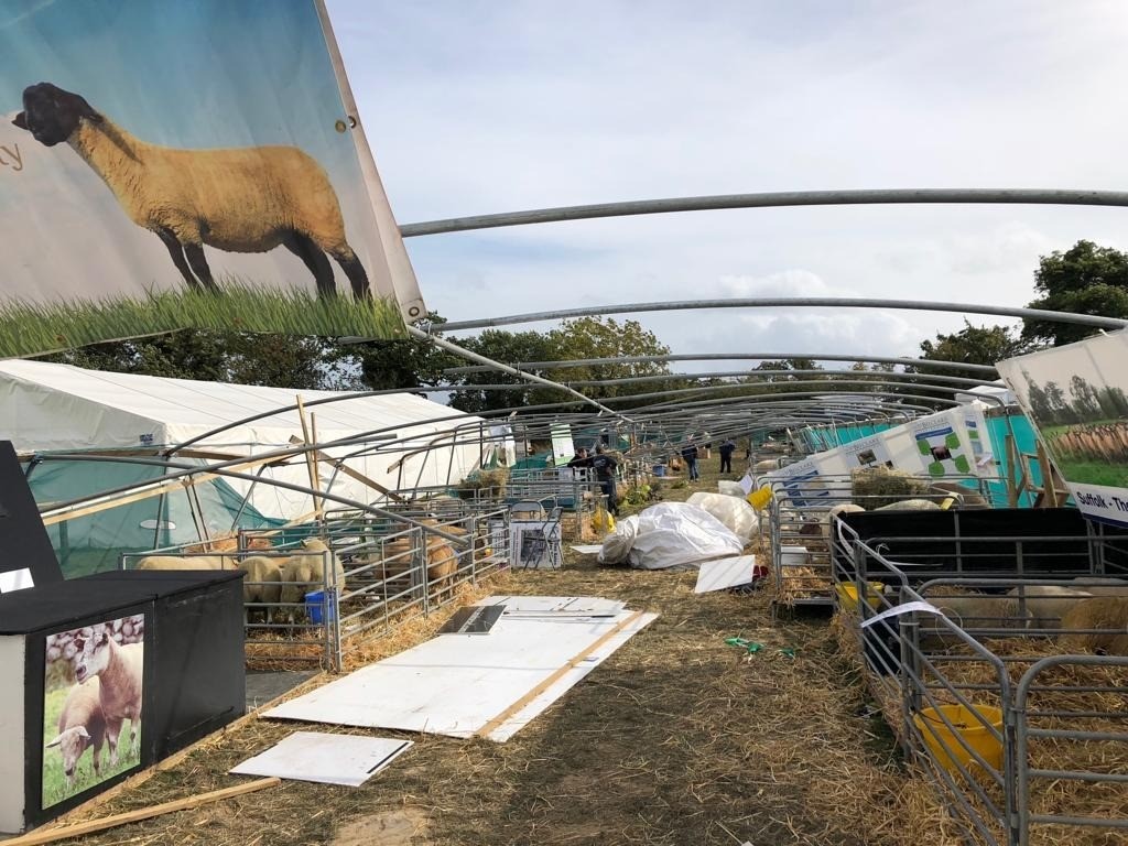 But, those wishing to see the sheep exhibit will come home rather disappointed. Wednesday’s Storm Ali left the sheep tunnel in tatters, forcing exhibitors to bring their sheep home after the tent became irreparable.