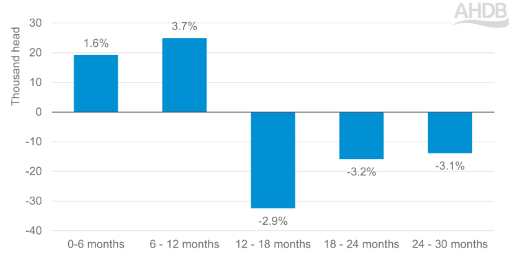 The number of cattle available for beef production aged 12-30 months was down by 3% year-on-year, indicating that supply tightness will continue into the medium-term.