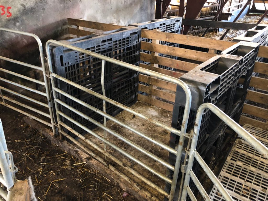 In between each pen is a plastic pallet. Furthermore, another plastic pallet is placed on the ground. The idea around this was when the pens are bedded with straw that the animal faeces will drain away – keeping the straw relatively dry.