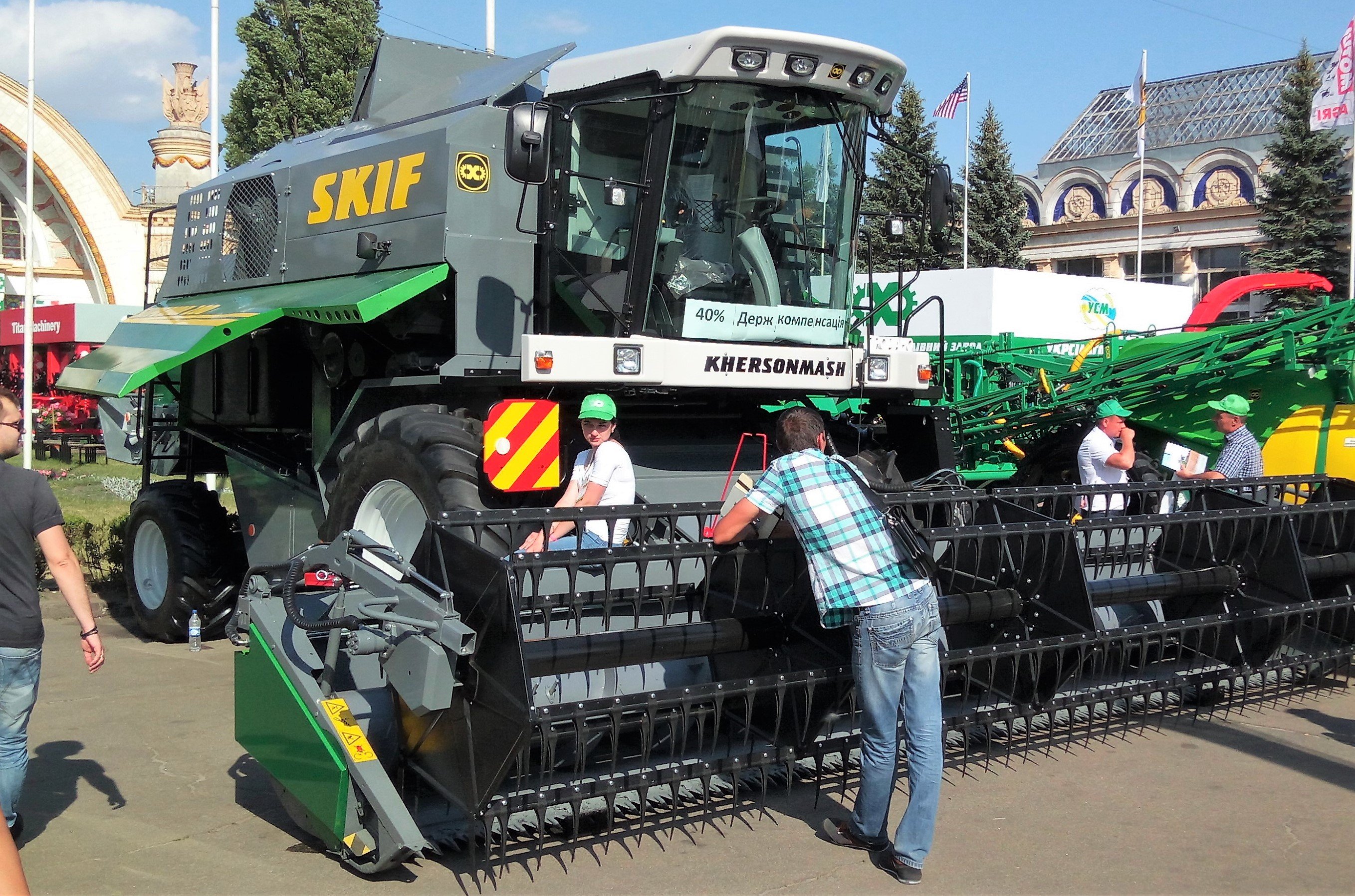 A modern SKIF model, powered by a 276hp, six-cylinder AGCO Sisu Power engine, is pictured below. This photograph was taken at the recent Agro-Expo exhibition in Kiev.