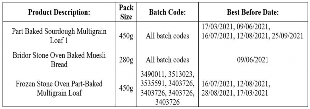 Recently, the FSAI also issued a recall of several batches of frozen bakery products due to the presence of ethylene oxide in sesame seeds used in the product. The implicated batches are: