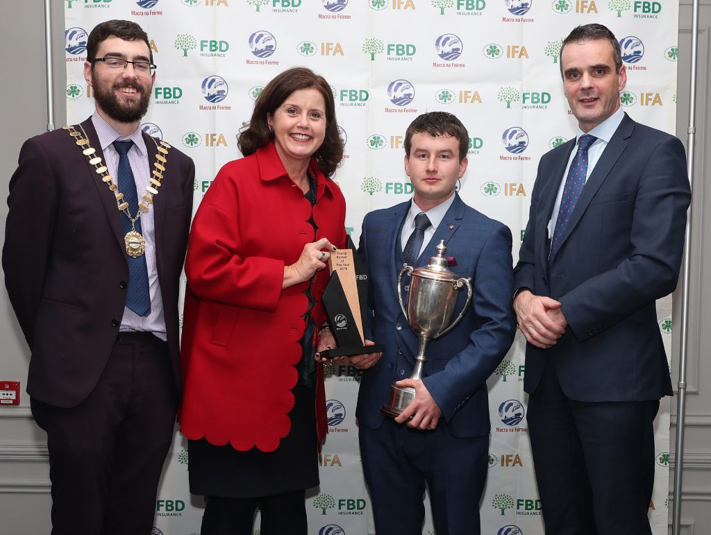FBD chief executive Fiona Muldoon, IFA president Joe Healy and Macra na Feirme national president Thomas Duffy presented Liam with his award tonight.