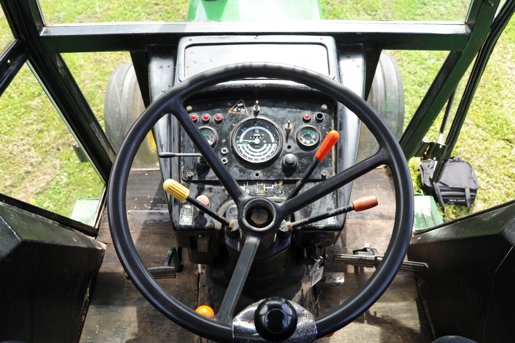 Despite the many seasons of hard work, the interior controls and trim are still quite serviceable. John Deere had a way of making things clear and simple at the time, through the use of coloured knobs and levers.