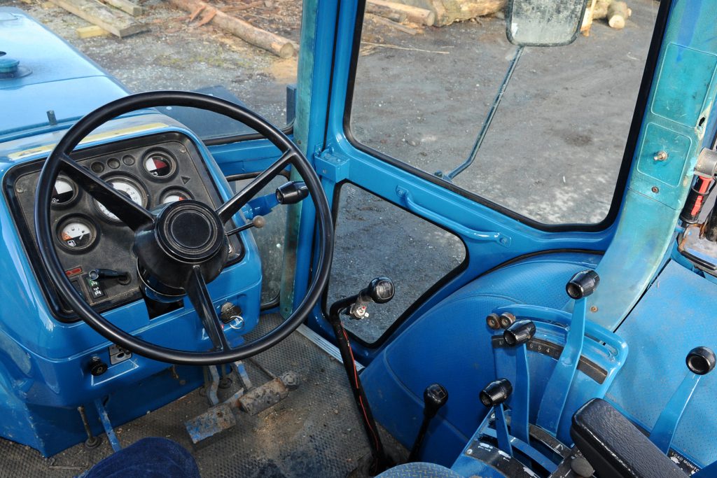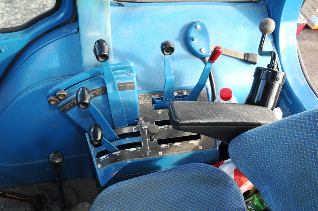 Inside, the cab is clean and bright; the controls are sufficient to operate the tractor without any degree of sophistication. There is not a trace of anything electronic.