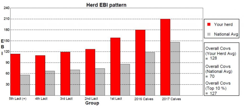 The herd also featured in the recent top 200 EBI herds in Ireland, sitting in 149th place, with a herd EBI of €129. The herd’s EBI is balanced between milk (€44), fertility (€51) and calving (€33).