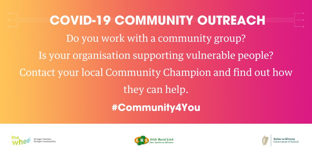 “Charities, community groups, and voluntary organisations that are currently supporting vulnerable people in the community, or are planning to do so, are advised to contact their local ‘community champion’ as soon as possible,” said Seamus.