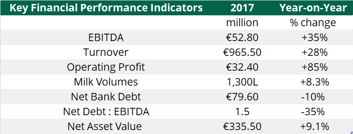 The results confirmed that the co-op recorded an operating profit of €32.4 million last year (2016: €17.5 million), which was generated from a turnover of €965.5 million.