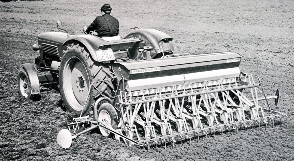 1966 saw the advent of what Amazone describes as an “active seed drill combination”. The so-called D4 (pictured below) was coupled to an RE reciprocating harrow – to form its first ‘combi’ rig.